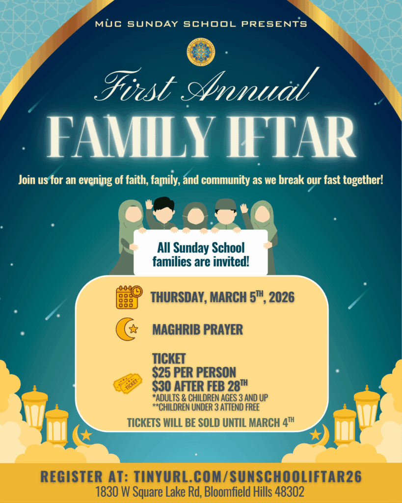 REGISTER HERE MUC Sunday School provides an excellent environment for children to grow, learn Islamic values, and develop life-long friendships with their peers. For more information, please email: mucsundayschool@gmail.com ENROLL HERE SUNDAY SCHOOL CALENDAR